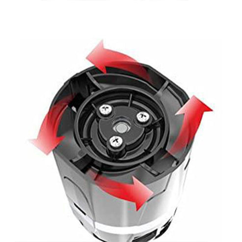 - Comes with three durable stainless steel jars (0.3L, 0.75L, 1.5L capacity), each fitted with multipurpose cutting blades and lids. The dynamically balanced Vortex Flow SS 304 Stainless steel blades will allow you to liquefy, grind, grate, crush, etc. Suitable for even the toughest ingredients.